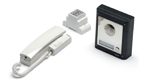 Audio entry kit based on the 4000 Series modular design incorporating two way speech, electronic call tone and lock release facility. The door station is surface with a back lit name plate. The standard finish is a stainless steel facia with gun metal grey surround.The telephone is wall mount with a lock release button and a three position call tone volume control. Up to 2 additional handsets can be added.