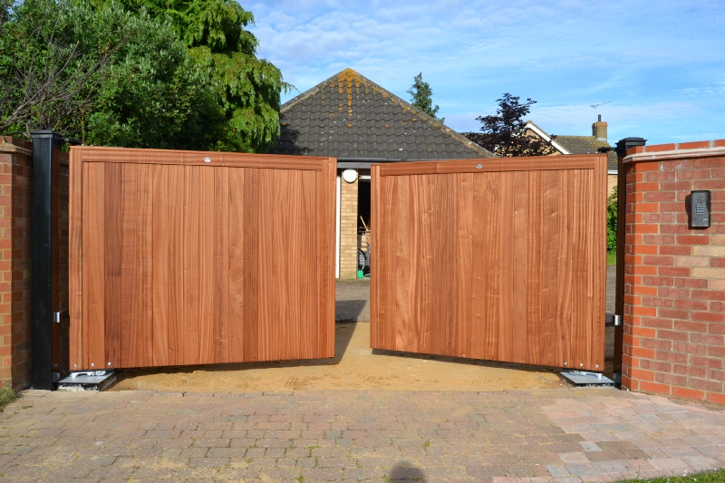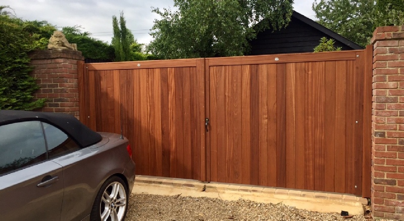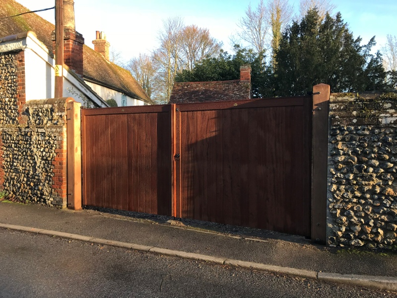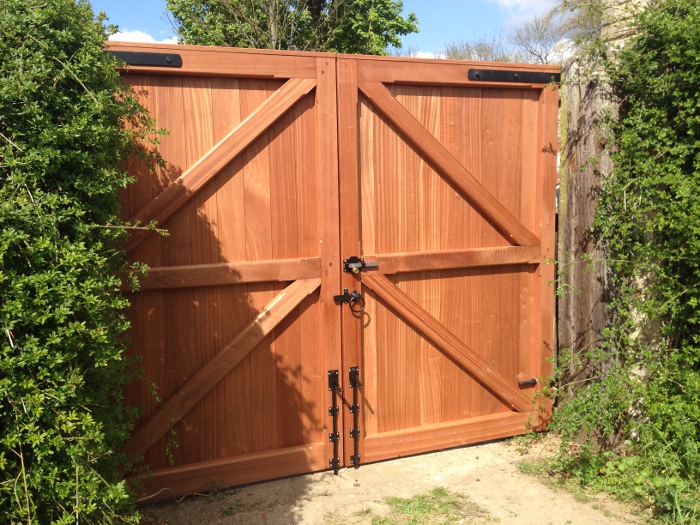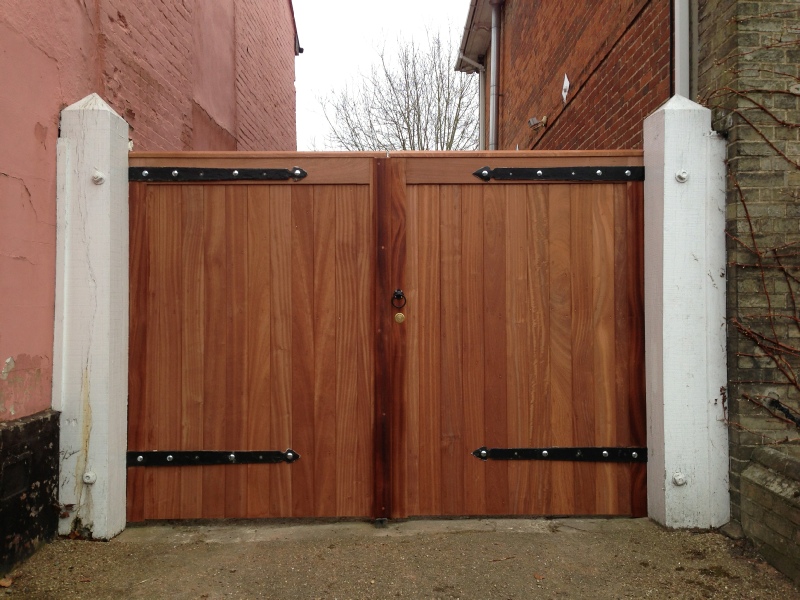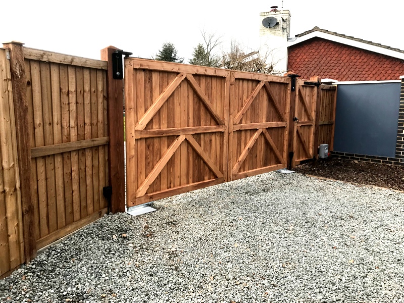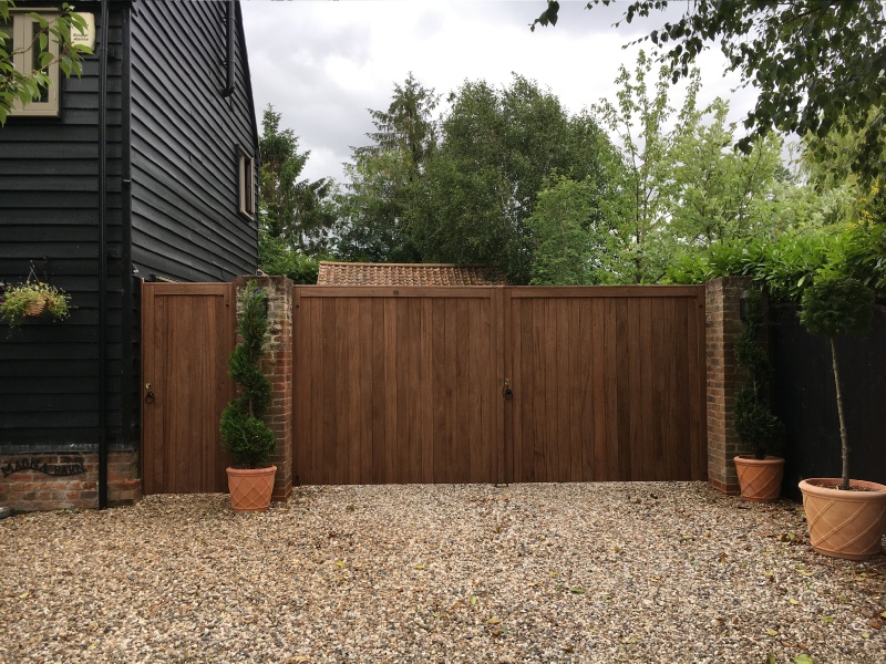 The Classic wooden driveway gates are a highly popular choice for those looking for security and privacy and don’t want to spend a fortune. The tongue and groove boards are recessed into the frame which means you get to see the frame on the front of these wooden gates. Mortise and tenon joints secured by nails and polyurethane glue for maximum strength. You have a choice of tops: Four Way, Half-Rounded, Rounded, One Way, Flat Top With and Without Cap. For maximum full height privacy choose the capped finish. The cap is a low profile 20mm tall smooth piece with rounded off edges. Versions that feature the ‘ears’ (Four Way, One Way, or Round) have a lower top beam (approx 75mm) and offer slightly less privacy as a result.