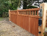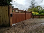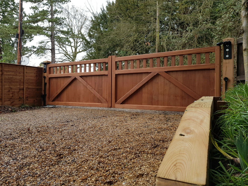 The Slatted Lodge wooden driveway gates bring a privacy to your property but still allows visibility, perfect for animal owners that want to be able to see through the gate but still have the security of keeping pets in. As with most of our wooden gates, the tongue & groove boards are recessed into the frame for the best look possible and to protect the end grain. The joints are mortise and tenon for strength and durability.